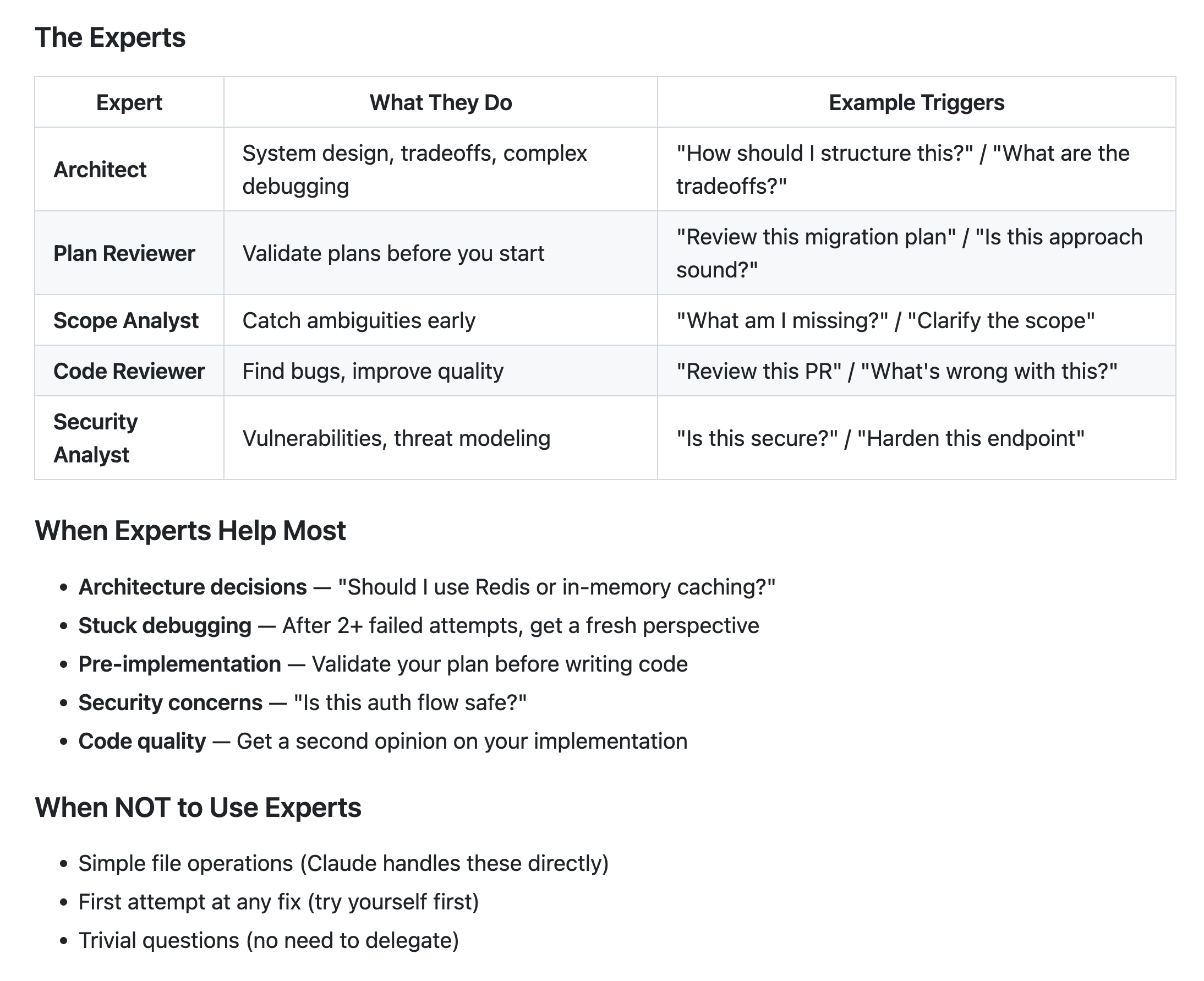 GPT expert subagents for Claude Code. Five specialists that can analyze AND implement—architecture, security, code review, and more.