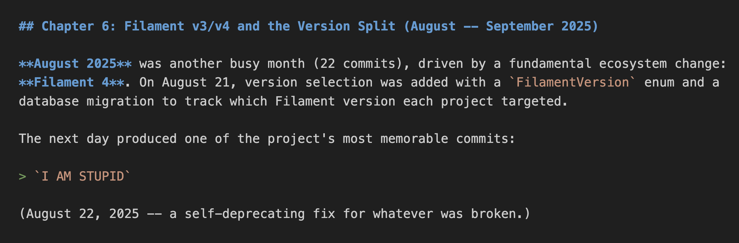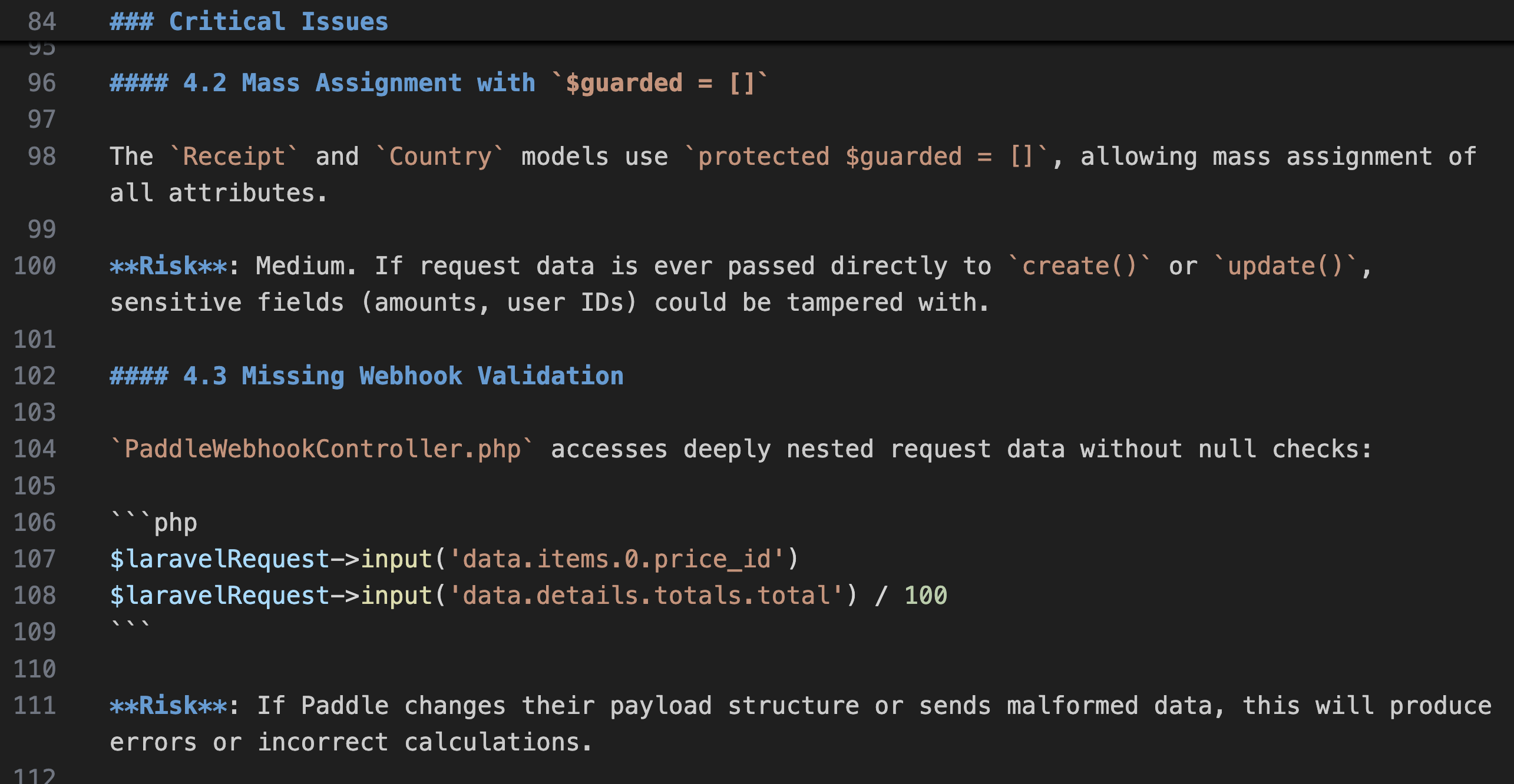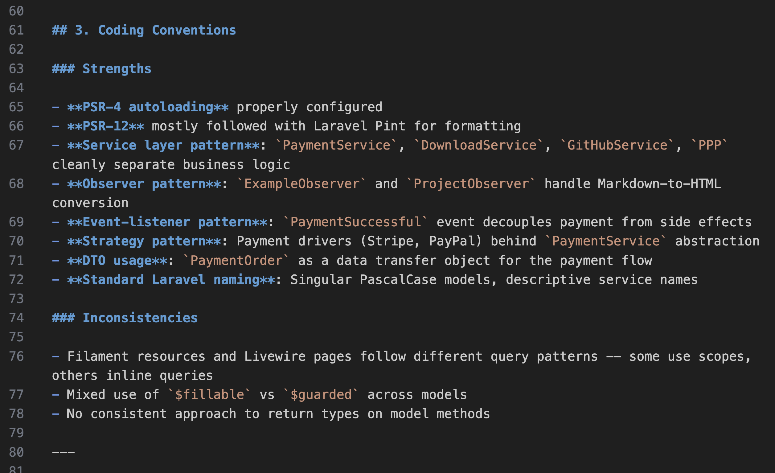 Here are a few screenshots of the result REPORT.md on one of my semi-old Laravel/Livewire/Filament project: